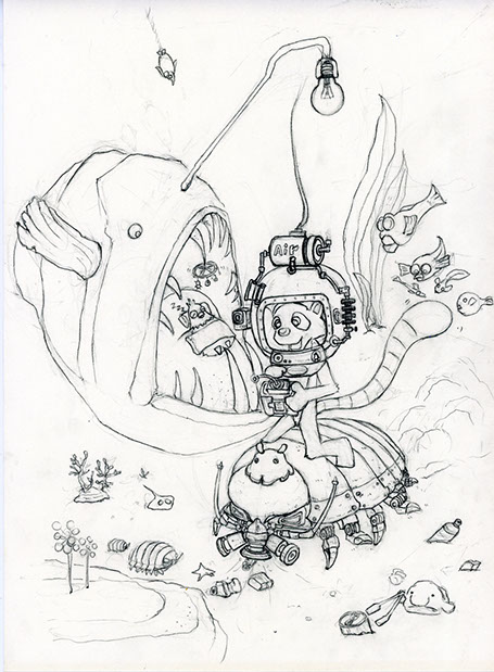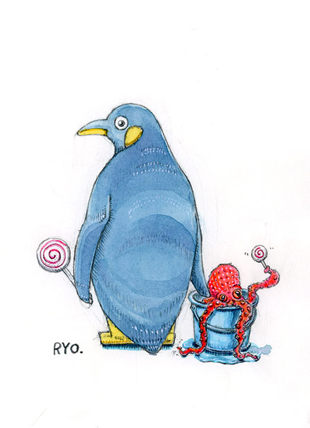 鉛筆画、ペン画、水彩画の作品です。