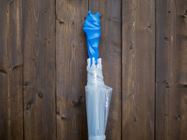 ビニール傘の持ち手をコウモリの型で作り(上記のコウモリの型とは違い二回りくらい大きいです)、ラグタイムさんでビニール傘に取り付けてもらい完成。