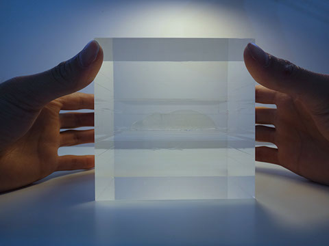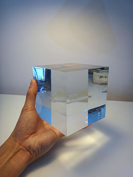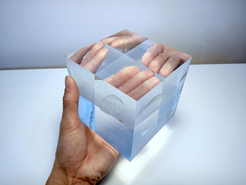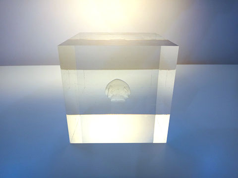 クリアキューブの中に透明のカバさんが入っているオーダーメイドオブジェです☆