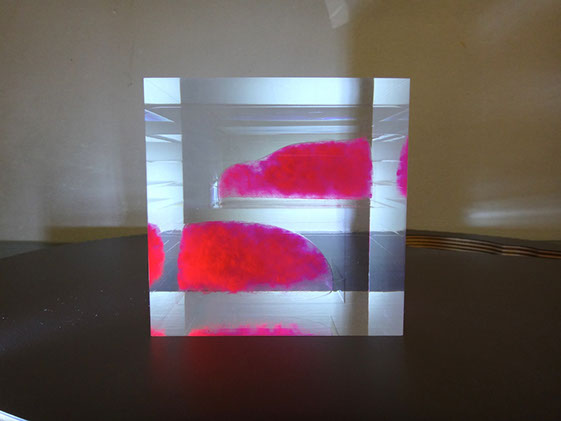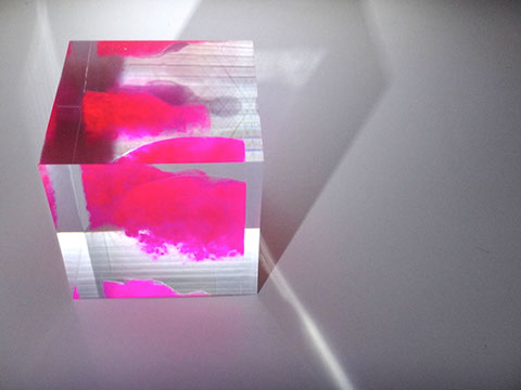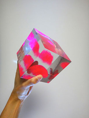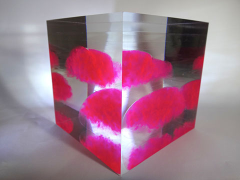クリアキューブの中に大きな透明ピンクのカバさんが入っているオーダーメイドオブジェです☆